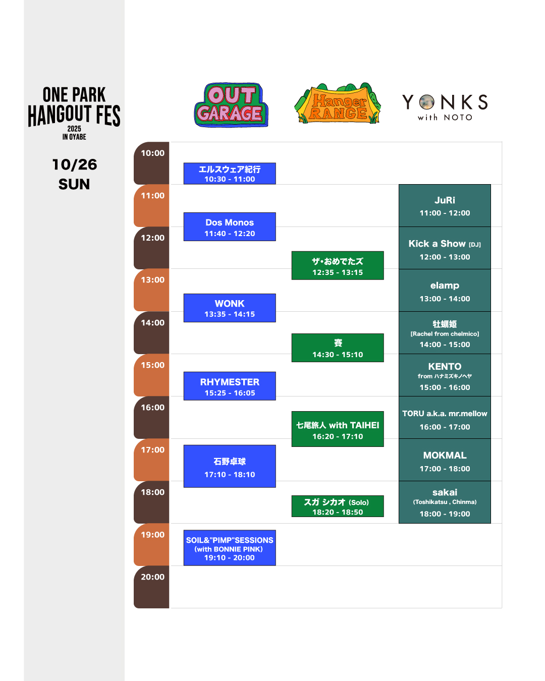 無料エリアに位置する【YONKS with NOTO】を含め、ステージ割り及びタイムテーブルの発表です!