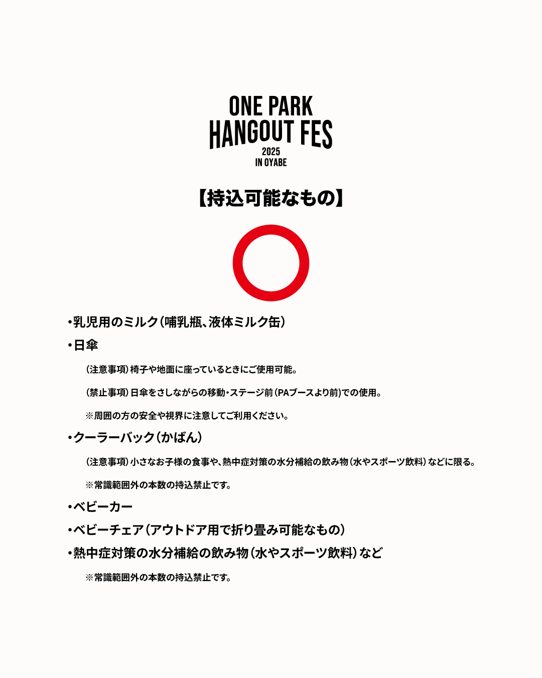 (禁止事項)日傘をさしながらの移動・ステージ前(PAブースより前)での使用。